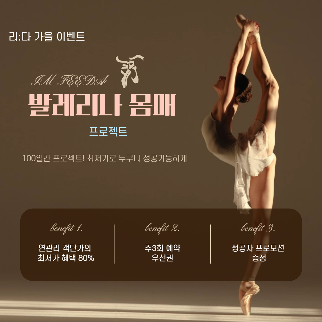 10월 등록자 한정으로 바디프로필 혜택권 (발레리나몸매 100일간의 프로젝트) 프로그램 등록 회원님께 선착순 바디 프로필컷 비용을 리다가 쏩니다!